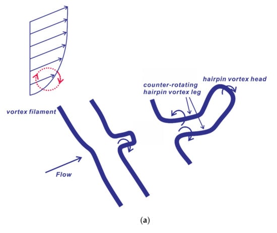 - Adrian, R.J. Hairpin vortex organization in wall turbulence. Phys. Fluids 2007, 19, 041301. [Google Scholar] [CrossRef]