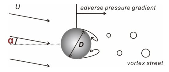 Schematic sketch of Von Karman’s vortex street and angle of attack.