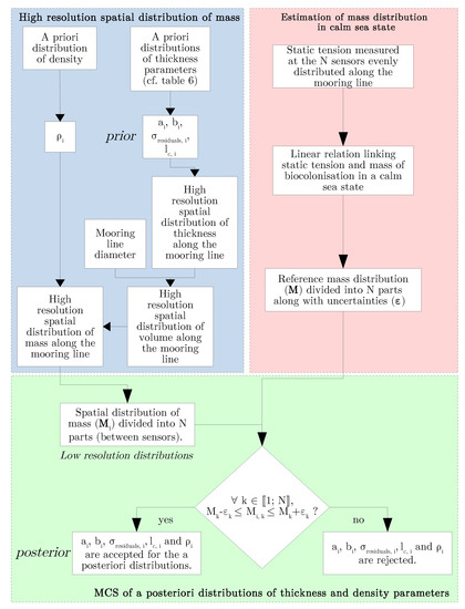 - present the methodology to build samples of posterior distributions of thickness and density parameters, which will depend on the number and the measurement error of tension sensors, and also on the reference mass distribution of bio-colonisation.