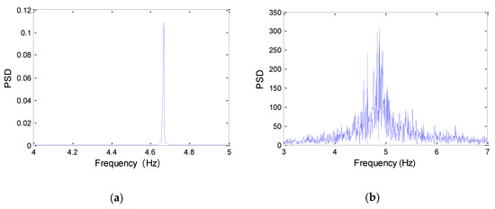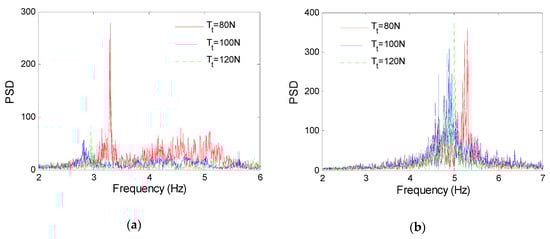 Frequency spectrum of TTR. (a) U = 0.3 m/s. (b) U = 0.5 m/s.