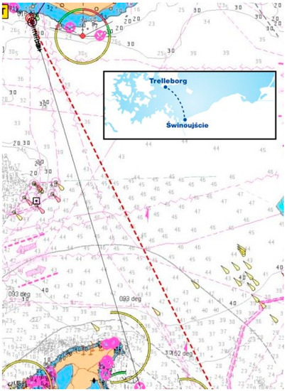 The northern part of the Trelleborg (Sweden)—Świnoujście (Poland) ferry route in the Southern Baltic Sea.