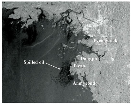 - Kim, T.S.; Park, K.A.; Li, X.; Lee, M.J.; Hong, S.W.; Lyu, S.J.; Nam, S.Y. Detection of the Hebei Spirit oil spill on SAR imagery and its temporal evolution in a coastal region of the Yellow Sea. Adv. Space Res. 2015, 56, 1079–1093. [Google Scholar] [CrossRef]