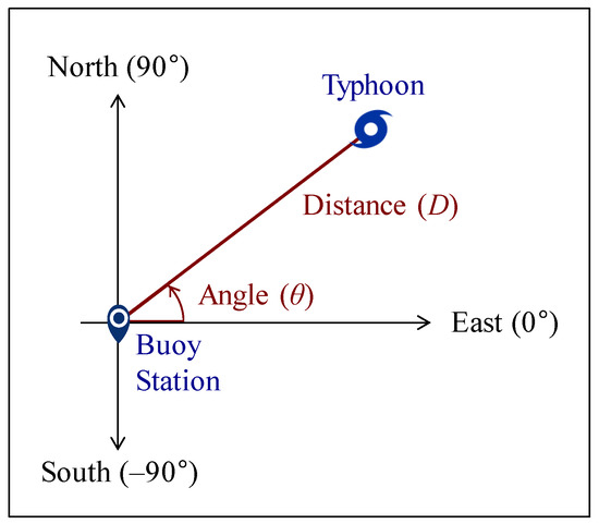 41] because typhoons generally approach Taiwan from the east and a typhoon north or south of the buoy has diverse effects on wave development. Additionally, this setting prevents discontinuity when the angle is ± 180° in the west, at which point the typhoon has passed.