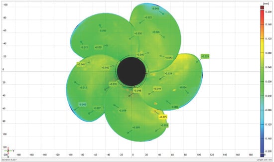 The propeller model was manufactured with high accuracy in consideration of cavitation testing as shown by the deviation contour plot given in Figure 6. The principal dimensions of the full-scale propeller are given in Table 1.