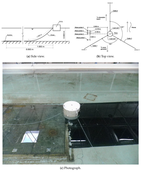 - Moura Paredes, G.; Palm, J.; Eskilsson, C.; Bergdahl, L.; Taveira-Pinto, F. Experimental investigation of mooring configurations for wave energy converters. Int. J. Mar. Energy 2016, 15, 56–67. [Google Scholar] [CrossRef]