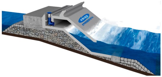There are several OWC wave energy converters that have been pilot tested, most of which are fixed type. The representative OWC plants are the Pico Plant in Portugal [], LIMPET OWC Plant in Scotland [], and Yongsu OWC Plant in Korea. The critical issue for the bottom-fixed structure is how to reduce energy production costs. Generally, it is known that construction of the massive substructure is quite expensive. For this reason, integrating the structure of the OWC device into the breakwater has been proposed to improve accessibility as well as construction, operation, and maintenance costs. []. So far, OWC plants combined with breakwaters have been constructed at the harbor of Sakata, Japan []; the port of Muturiku, Spain []; and the harbor of Civitavecchia, Italy [].