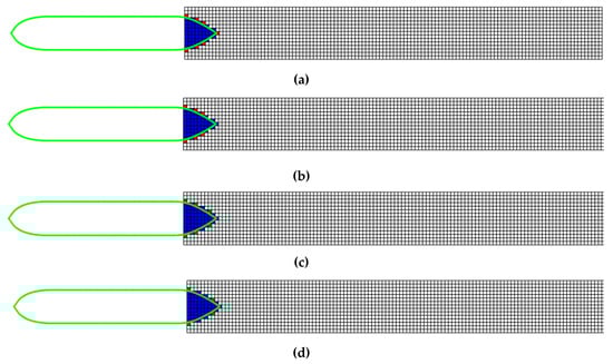 The icebreaking force occurs when ice collides with the hull. The local icebreaking force on each hull node was estimated at each time step. The detailed information on the calculation of local ice force Fbi was previously described by Zhou et al. []. The total icebreaking force were calculated as the sum of all local forces Fbi on each panel or hull node on the waterline at a certain time instance: