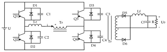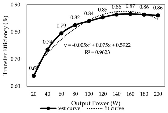 The DC/DC converters in undersea stations are used to step down the HVDC from the transmission line, and the schematic diagram of DC/DC converters is shown in Figure 6. In the laboratory prototype, the output power range of the DC/DC converter is 20 W to 200 W. The conversion efficiency is calculated by measuring the input power and output power of the converter, and the results are shown in Figure 7. The conversion efficiency can be approximated as quadratic polynomials. Using state estimation to locate the fault point, the conversion efficiency of the DC/DC converters are taken into account in this paper:
