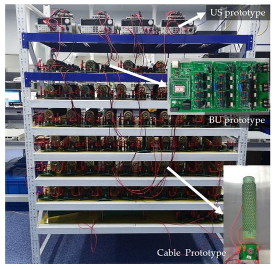 According to the topology of the CSO in the East China Sea, a circuit prototype is established in our laboratory, shown in Figure 10. DC power supplies are used to simulate shore stations; the output voltages of the power supplies are 400 V. In this prototype, we use resistors, inductors, and capacitors to simulate the submarine cables. The connection relationship is shown in Figure 4, and the cable resistance is 1 Ω/km.