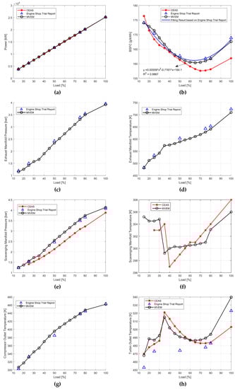 where is the specific enthalpy of exhaust gas; is the combustion efficiency, which is a function of the air-fuel ratio (); is the constant pressure specific heat of the scavenging air; is the fuel lower heating value; is the fuel chemical energy proportion in the exhaust gas, which can be fitted as a linear function of the brake power, that is .