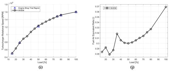 The mean indicated effective pressure is fitted as a linear function of the fuel index. According to the engine shop trial report, the mean friction effective pressure is always 1 bar for all the tested loading conditions, therefore, a constant value of is assumed in this paper. Having obtained and , the mean brake effective pressure can be calculated as .