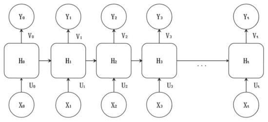 A simple RNN consists of an input layer, a hidden layer, and an output layer, where Xt is the input, Yt is the output, Ht is the hidden layer, Ut is the weight of the input value Xt, and Vt is the weight of the hidden layer Ht. In a RNN, the input information continuously loops through the structure. The simple structure of RNN is shown in Figure 2.