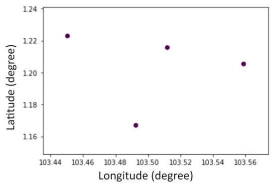 To verify the validity of the prediction framework, a case study was performed at the western entrance of the Malacca Strait, which is the busiest water area of Singapore. The water area in this study is selected between 103.4° E to 103.6° E in longitude and 1.1° N to 1.2° N in latitude with the data from maritime safety research [44,45], as shown in Figure 6 and Figure 7.