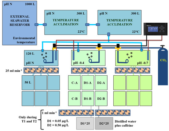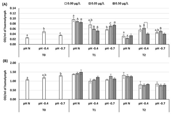 - Munari, M.; Matozzo, V.; Chemello, G.; Riedl, V.; Pastore, P.; Badocco, D.; Marin, M.G. Seawater acidification and emerging contaminants: A dangerous marriage for hemocytes of marine bivalves. Environ. Res. 2019, 175, 11–21. [Google Scholar] [CrossRef]