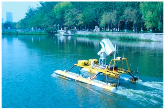 As a platform that can autonomously run in the ocean, lakes and rivers, USVs (Unmanned Surface Vehicles) can perform various civilian and military works, such as marine surveying and mapping, environmental monitoring, maritime search/rescue and military strikes [,,]. Indeed, USVs have become popular in recent years, with researchers focusing on many related research areas, including collision avoidance [,,], path planning [,] and navigation motion control [,], etc.