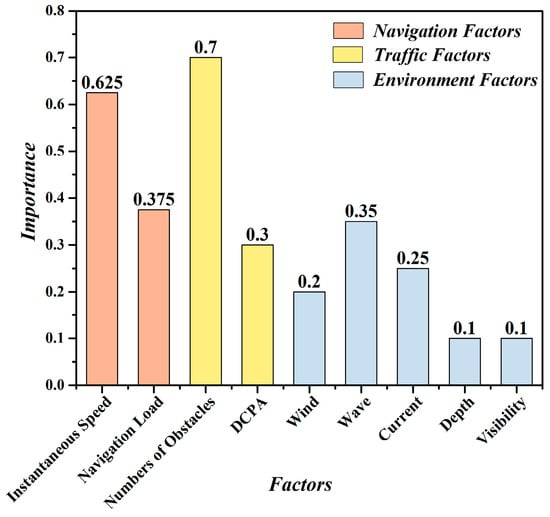 It can be seen that the size of the DNSD enlarges with an escalation in the working condition level. Considering the demand of “early”, “large”, “wide” and “clear” in the COLREGs [], it is necessary to set enough space around the USVs to avoid collision. When there are obstacles in the fore/starboard of the USVs, or drift into fore/starboard by the influence of waves, winds and currents, the length of Rfore and Rstarb of the DNSD increase faster, while the length of Raft and Rport change less. On the contrary, the length of the Raft and Rport increase faster and that of the Rfore and Rstarb vary less; this shows that the DNSD can adjust the domain boundaries according to the actual situation.