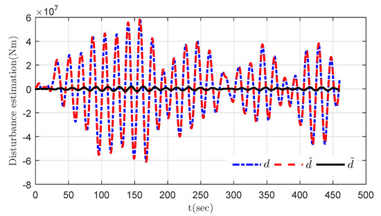 Figure 6, Figure 7 and Figure 8 show the performance of the proposed ADRC control system. Figure 6 shows that the control torque can enable the heading dynamics track the command angle of from the guidance law quickly and accurately. The state r estimation effect of ESO is expressed in Figure 7, while the disturbance estimation effect of ESO is shown in Figure 8. The proposed ESO can estimate the disturbance as well as unknown system state accurately.