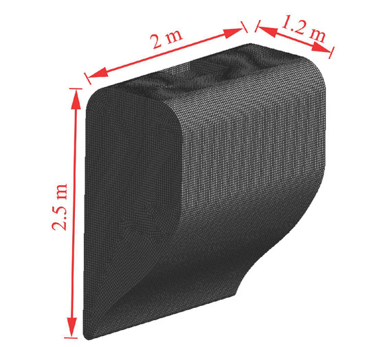 It can be seen from the above analysis that the frequency domain analysis is an important step in WEC design and the basis of PTO model design. Therefore, hydrodynamic analysis of the buoy used was carried out by hydrodynamic analysis software ANSYS/AQWA. Figure 3 is a finite element model of designed buoy for an artificial breakwater WEC with a node number of 31,246 and unit number of 31,244. According to the gravity center position, moment of inertia and mass parameters calculated by UG software, the hydrodynamic solution analysis was carried out by AQWA. The added mass, radiation damping coefficient, Response Amplitude Operators (RAO) and the Froude–Krylov force coefficient of the buoy is obtained as demonstrated in Figure 4.