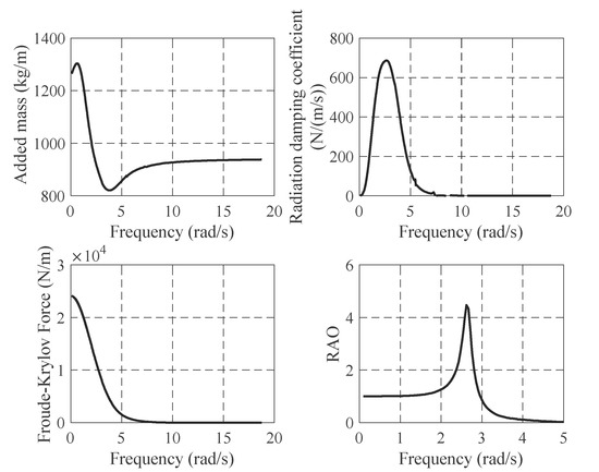 The added mass, radiation damping coefficient, RAO and the Froude–Krylov force coefficient of the buoy.