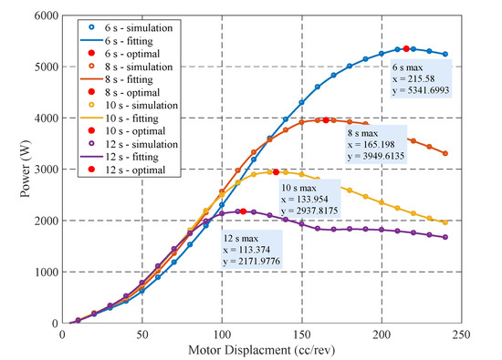 Optimal damping will be found when the damping is adjusted. We obtained the power variation of different motor displacements and generator loads through simulation.