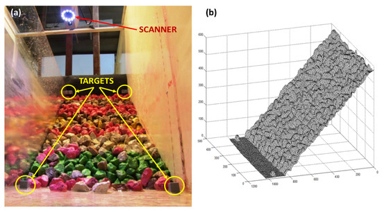 The different measuring techniques can be combined together for double checking or for obtaining seamless data of the whole section, including the emerged part, intertidal zone, and submerged part. As an example, Tulsi [58] proposed the characterization of the whole 3D surface of a real dolos breakwater, for damage survey purposes, by using a dual measuring method mounted on a boat. It consisted of a LIDAR scanner for the terrestrial mapping together with a multi-beam echo sounder for the submerged part.