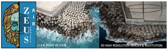 Image from a RPAS (remotely piloted aircraft system) equipped with a digital camera and photogrammetric restitution of a section of the breakwater of Carboneras, Almería (Spain). Source: ZEUSair Project / SAMOA II Overtopping Project [63].