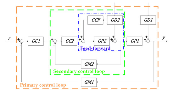 Several studies focused on control methods using cascade control and feed-forward control. Lee et al. [12] suggested the use of internal model controller (IMC) principles as a controller tuning method for both inner and outer loop controllers in cascade control. Kaya [13,14] proposed the application of the Smith predictor scheme in a long time delay system. Some researchers [15,16,17,18] studied feed-forward control with a feedback control system using advanced tuning methods such as robust control. Although many papers focused on controller tuning, others studied performance improvement by combining two types of controllers. Nguyen et al. [19] constructed a method combining an adaptively feed-forward neural controller and a proportional–integral–derivative (PID) controller to control the joint-angle position of robots.