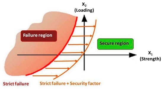 Failure and secure region for a generic bi-dimensional case.