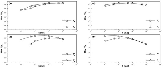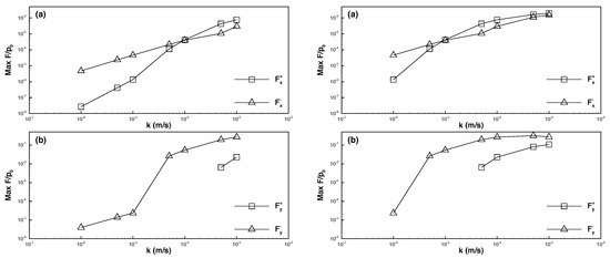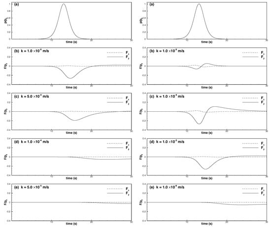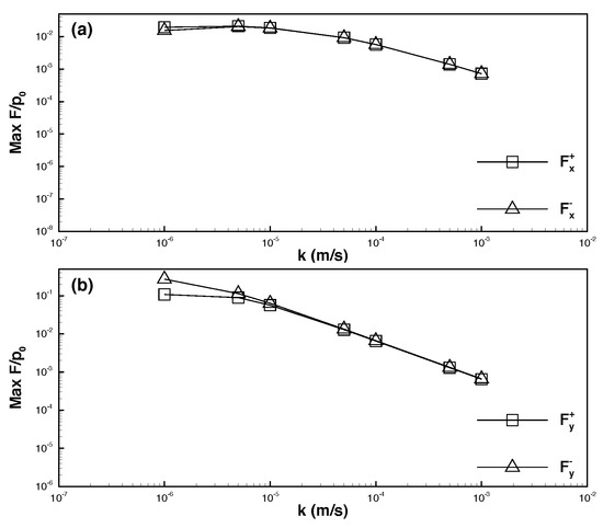 - When the permeability coefficient was higher and the solitary wave amplitude increased, the maximum downward vertical force () increased considerably, whereas the upward vertical force () decreased slightly. The horizontal force was weaker than the vertical force by one order of magnitude. Moreover, the maximum leftward and rightward horizontal forces ( and ) increased with the solitary wave amplitude.