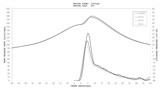 The dependence of fuels on the heat release rate and cylinder pressure (1000 rpm/60%).
