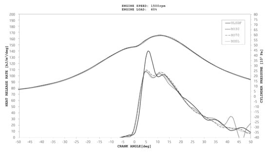 The dependence of fuels on the heat release rate and cylinder pressure (1500 rpm/60%).