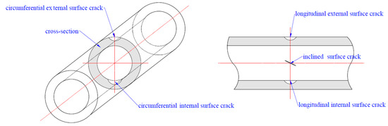 3.1. Configurations of Surface Cracks and Pipes
