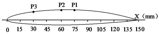 Three pressure-monitoring points were set on the mid-section of the hydrofoil, as shown in Figure 3.