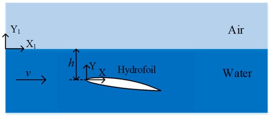 The middle section along the spanwise length of the flow field is shown in Figure 4. The zero point of the primary coordinate system, XOY, is located at the leading edge of the hydrofoil. To represent the shape of the free surface, a local coordinate system, X1OY1, is established at the free surface of the velocity inlet.