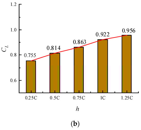 Comparison of the lift coefficient fluctuation and the average value at different water depth. (a) Lift coefficient fluctuations at different water depths; (b) Average lift coefficient at different water depths.