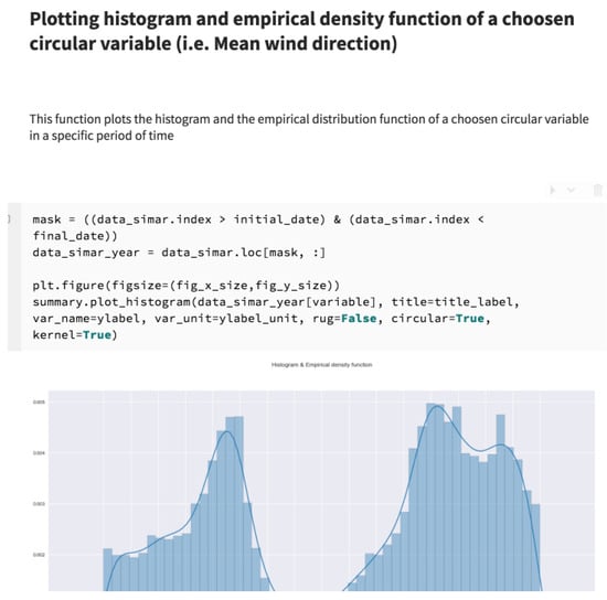 For this reason, several tutorial notebooks have been developed explaining the functionalities of the tool in an interactive way. Figure 5 shows an example that corresponds to the exploratory analysis of a circular variable.