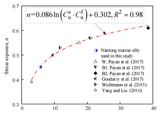 A* = 59.3 MPa and R-square = 0.938 for Nantong silty sand, n was determined using Equation (4).