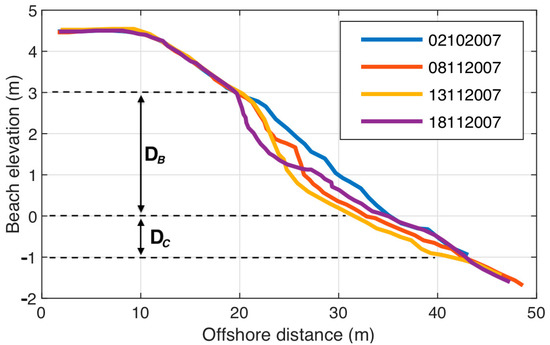 - Dean, R.G. Equilibrium Beach Profiles: US Atlantic and Gulf Coasts; Department of Civil Engineering and College of Marine Studies, Newark, University of Delaware: Newark, DE, USA, 1977. [Google Scholar]
