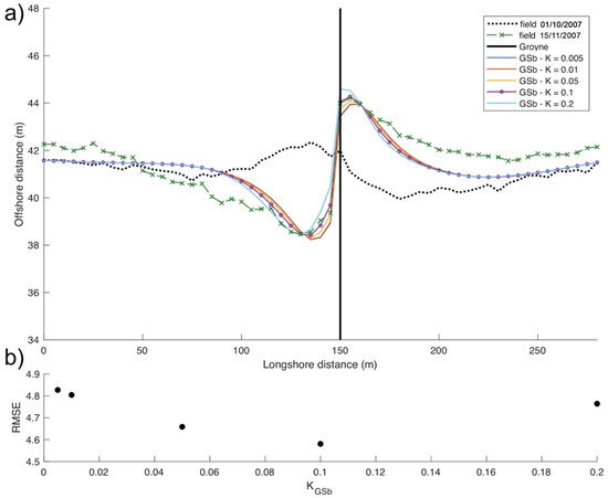 - Martín-Grandes, I.; Hughes, J.; Simmonds, D.J.; Chadwick, A.J.; Reeve, D.E. Novel methodology for one line model calibration using impoundment on mixed beach. In Proceedings of the Coastal Dynamics 2009: Impacts of Human Activities on Dynamic Coastal Processes, Tokyo, Japan, 7–11 September 2009; World Scientific: Singapore, 2009; pp. 1–10. [Google Scholar]