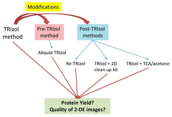 - Likhite, N.; Warawdekar, U.M. A unique method for isolation and solubilization of proteins after extraction of RNA from tumor tissue using Trizol. J. Biomol. Tech. 2011, 22, 37–44. [Google Scholar]