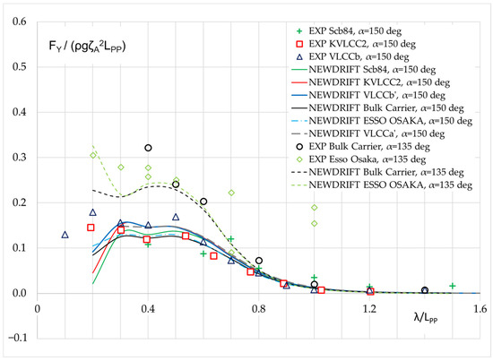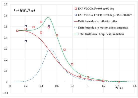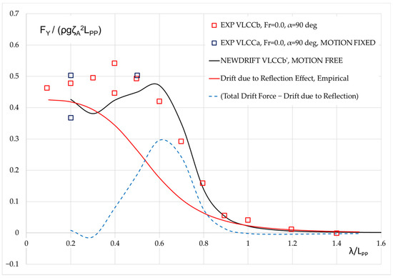 Figure 12 shows the preliminary results of the approximated mean sway force of the VLCCb’ based on Equations (7) and (10) (sum of reflection and motion contributions):