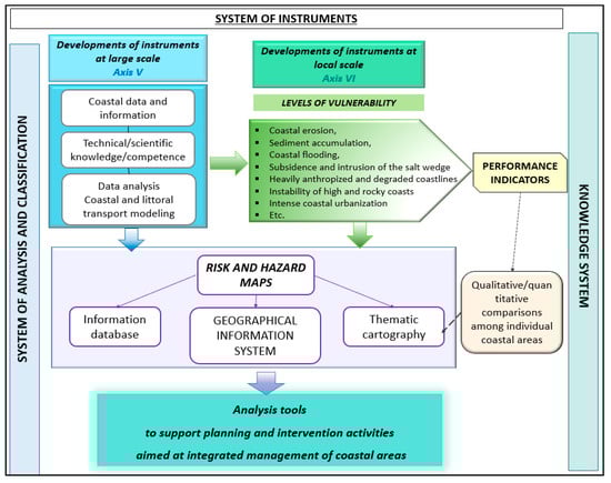 The System of Instruments provides for the development both of wide (Axis V) and local scale (Axis VI) instruments (Figure 3). The fundamental instruments for coastal zones management are the risk maps.