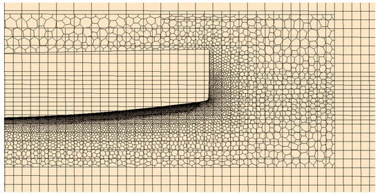 A polyhedral mesh was chosen for the overset region, as shown in Figure 8, due to the possibility to change the volume of cells gradually and prevent wave reflection near the boat where the strongest gradients are solved.