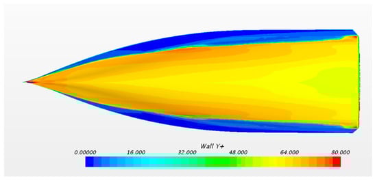However, the domain’s dimensions do have an important impact on the fluid dynamics and are linked to the speed of the test. It is fundamental to capture the wave pattern reasonably well, in order to evaluate the amount of energy that is subtracted from the boat. In this regard, the domain needs to be large enough to contain about 6 wavelengths behind the hull; in this way, it is possible to accurately compute the contribution to the total drag due to the perturbation of the wave field after the transition of the hull, usually referred to as wave-making resistance [13,14].