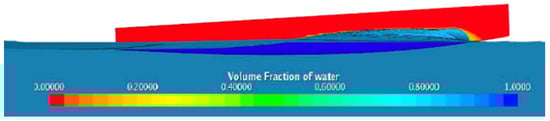 However, the numerical model can suffer from numerical ventilation [7,8,37], even for low speed such as 3 m/s (Froude number = 0.4465), for particular hull shapes or trimming angle, especially if the bow is not piercing the sea surface but lies over it [12,13], as shown in Figure 11.