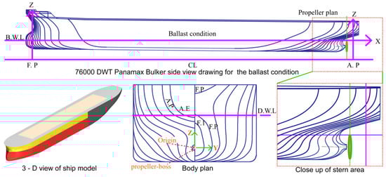 S/U, and the streamline in the propeller region under the ballast and design conditions shown in