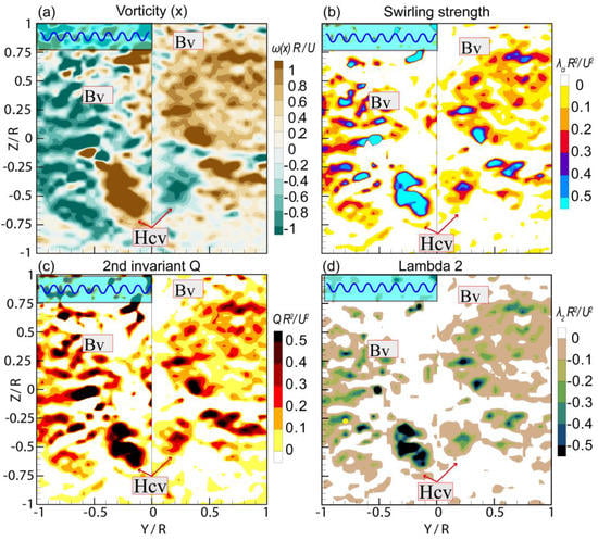 24], The vorticity (x), swirling strength, 2nd invariant Q and lambda 2 conducts dimensionless processing by multiply R/U and R