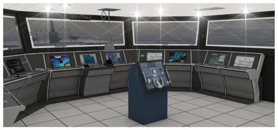 The reliability of ship-handling simulations is remarkably vital; thus, we chose a full mission ship handling simulator (FMSS) devised by the Korea Research Institute of Ships and Ocean engineering (KRISO) in 1984. The KRISO FMSS has been upgraded by the private company ‘SafeTec’, whose researchers have maintained co-operation with KRISO researchers. Ship characteristics models are designed using actual sea-trial reports and ship data. Marine environment models can also be designed, but this study did not require any special circumstances. A mockup bridge is shown in Figure 4.