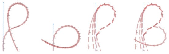 The length of the stern kick is known to be 10–13% (1/8–1/10 L) of the ship’s length (L) []. The separation distance by the kick effect from the original track is known to be about 1/4–1/7 L. Therefore, the swing of a ship’s stern using the kick keeps a person who has fallen overboard away from the intake current created by propulsion systems.