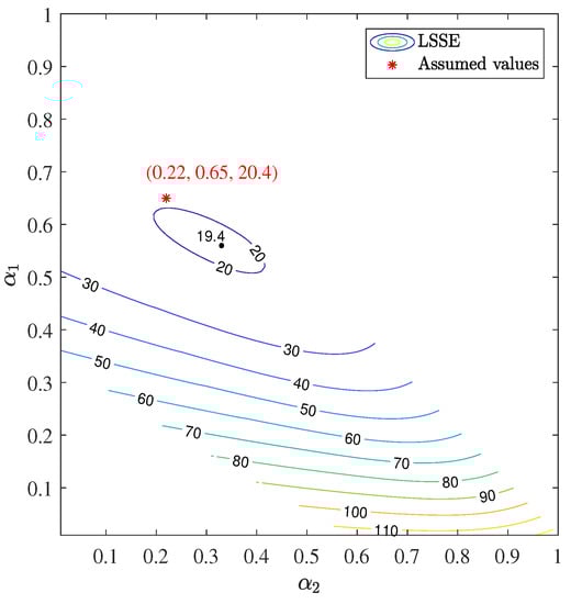- The contour of the effective data of varying with the variations of and () is plotted in Figure 14.